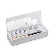 Para proteger sus pesas de calibración le ofrecemos el estuche/maleta para pesas a juego adecuado. Si no hay ninguna prescripción legal o normativos, puede elegir entre plástico, con protección de aluminio o madera. En la tabla de pesas de calibración en las páginas siguientes encontrará los estuches/maletas para pesas disponibles en forma de icono. Así tiene un panorama completo y compacto de todos los materiales, ejecuciones, tamaños y precios.