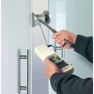 Sistema de comprobación de puertas: Asa (longitud: 300 mm) y dos placas redondas de admisión de fuerza (∅ 85 mm) como opción para FH 1K hasta FH 5K para la comprobación segura de fuerzas de cierre (no autorizadas según DIN 18650 o similar), hasta 5 kN