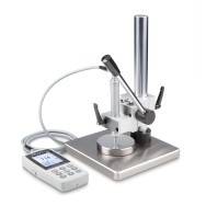 Elementos mecánicos que funcionan suavemente, longitud de carrera 34 mm, altura máxima del objeto en ensayo dentro del banco de pruebas 240 mm, cabeza de ensayo giratorio para mediciones fuera de la placa base, versión muy resistente, peso neto aprox. 9 kg